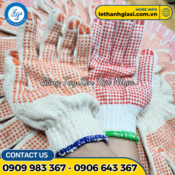- ỨNG DỤNG: bao tay len phủ hạt nhựa dược sử dụng cho công nhân ở công trường xây dựng, bốc vác, cơ khí, luyện kim, công trình, chăn nuôi...