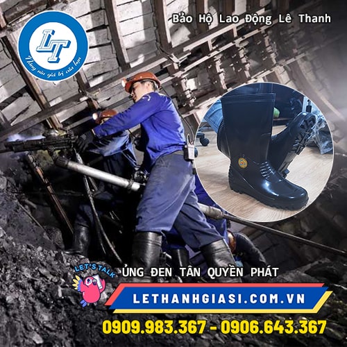 <ủng nhựa đen chống trơn trong hầm mỏ ẩm ướt>